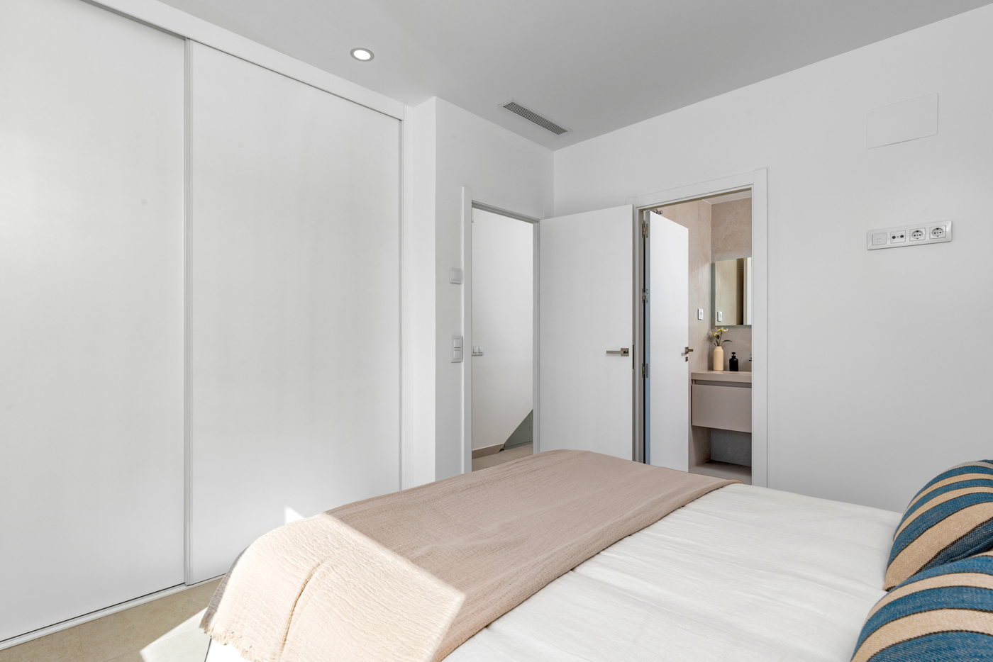 On the ground floor, linked to the garden, we find a bright living-dining room plus kitchen as well as a double bedroom and bathroom. The kitchen will be delivered furnished and with a Silestone type countertop and sink.