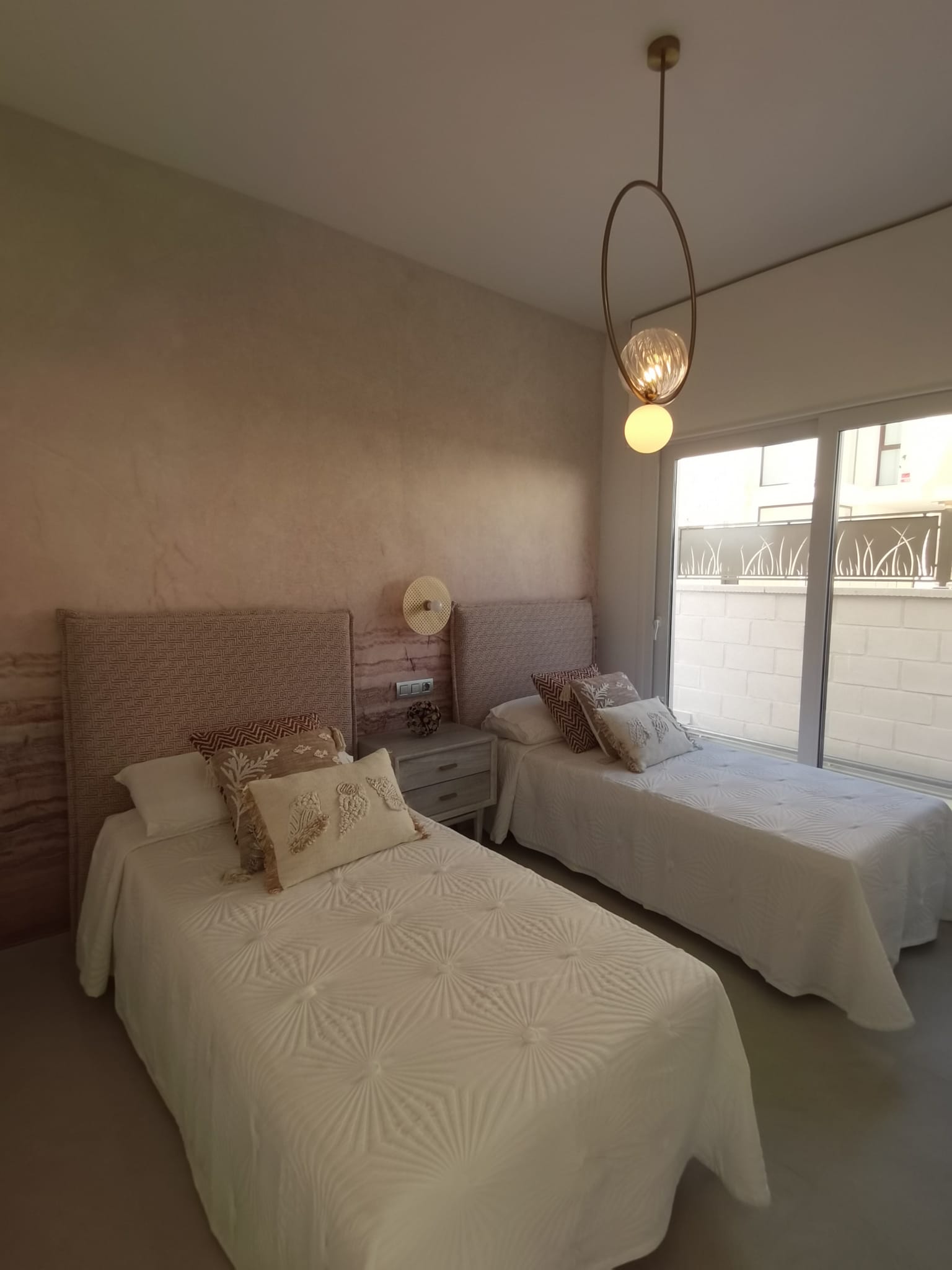 Estas villas cuentan con tres dormitorios con armarios empotrados y tres baños completos que incluyen mamparas y espejos.