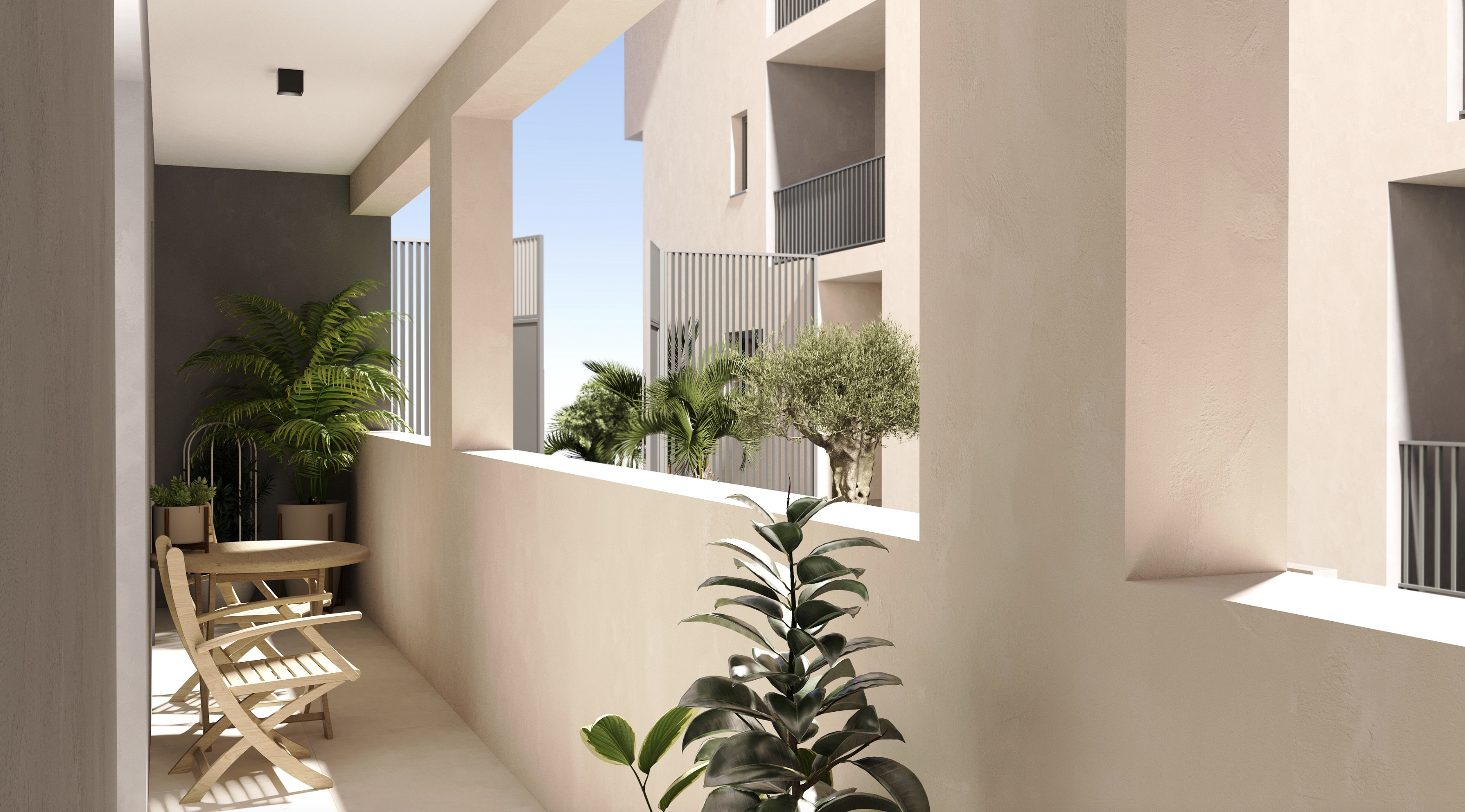 Het project bestaat uit twee moderne gebouwen, omgeven door aangelegde tuinen en gemeenschappelijke ruimtes die zijn ontworpen voor het comfort en plezier van de bewoners. In totaal worden 56 stijlvolle appartementen met 1, 2 en 3 slaapkamers gerealiseerd, allemaal met een privéterras en ontworpen met aandacht voor wooncomfort, esthetiek, energie-efficiëntie en met gebruik van hoogwaardige materialen.
