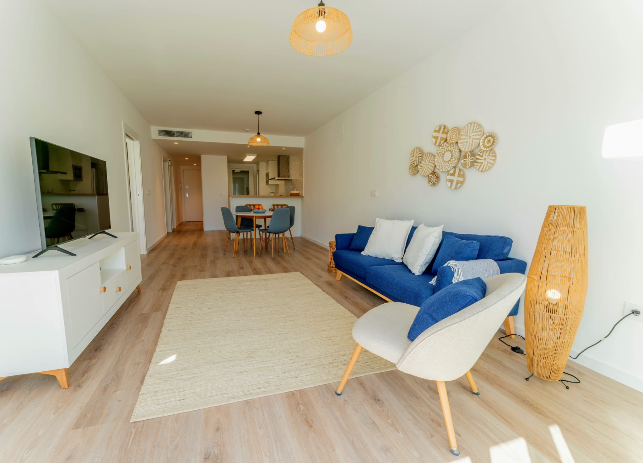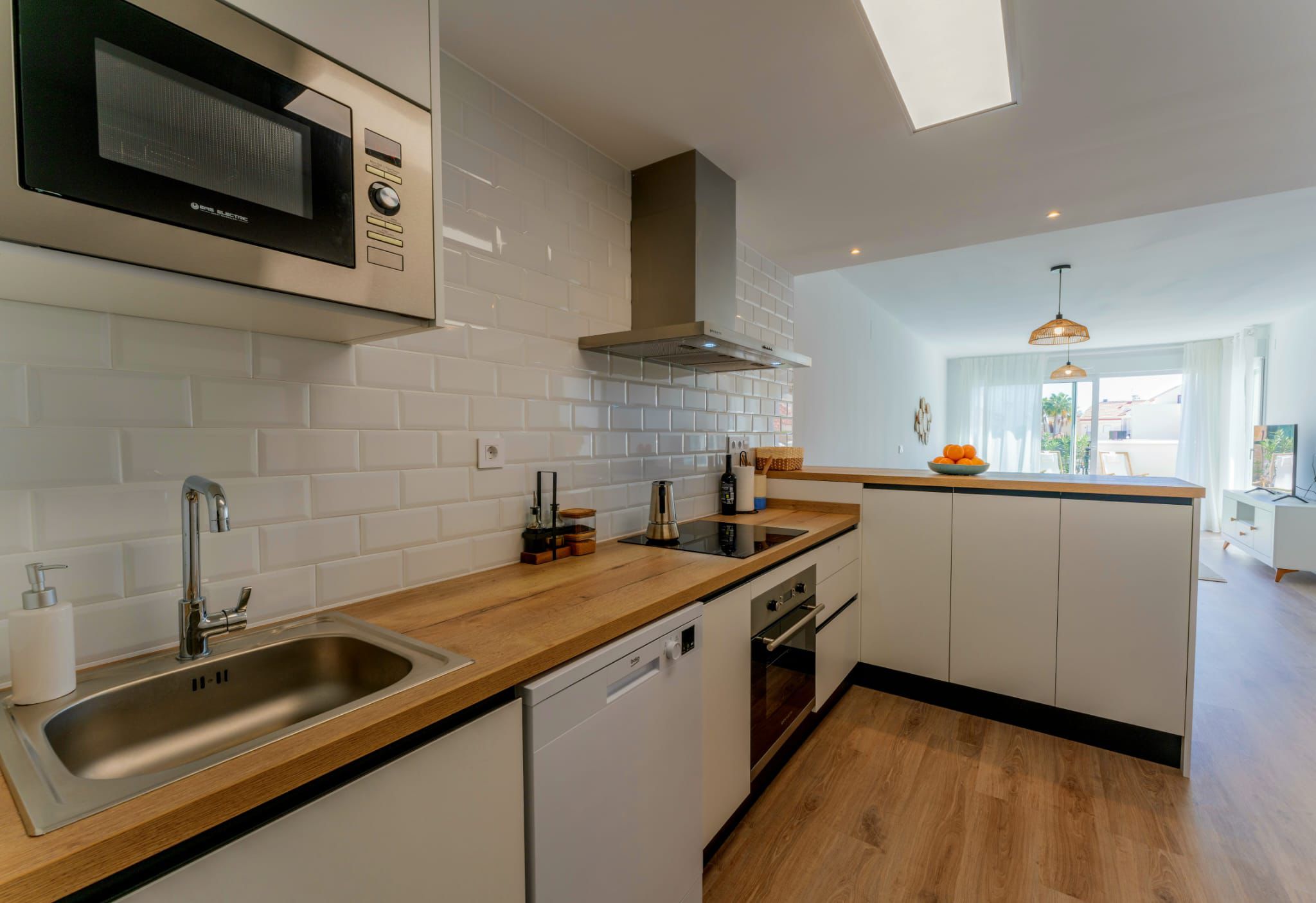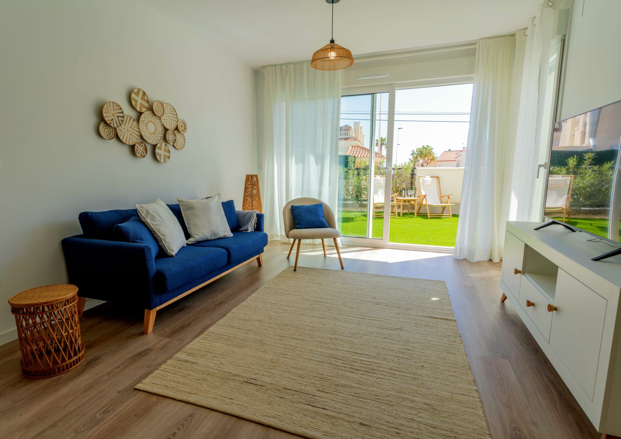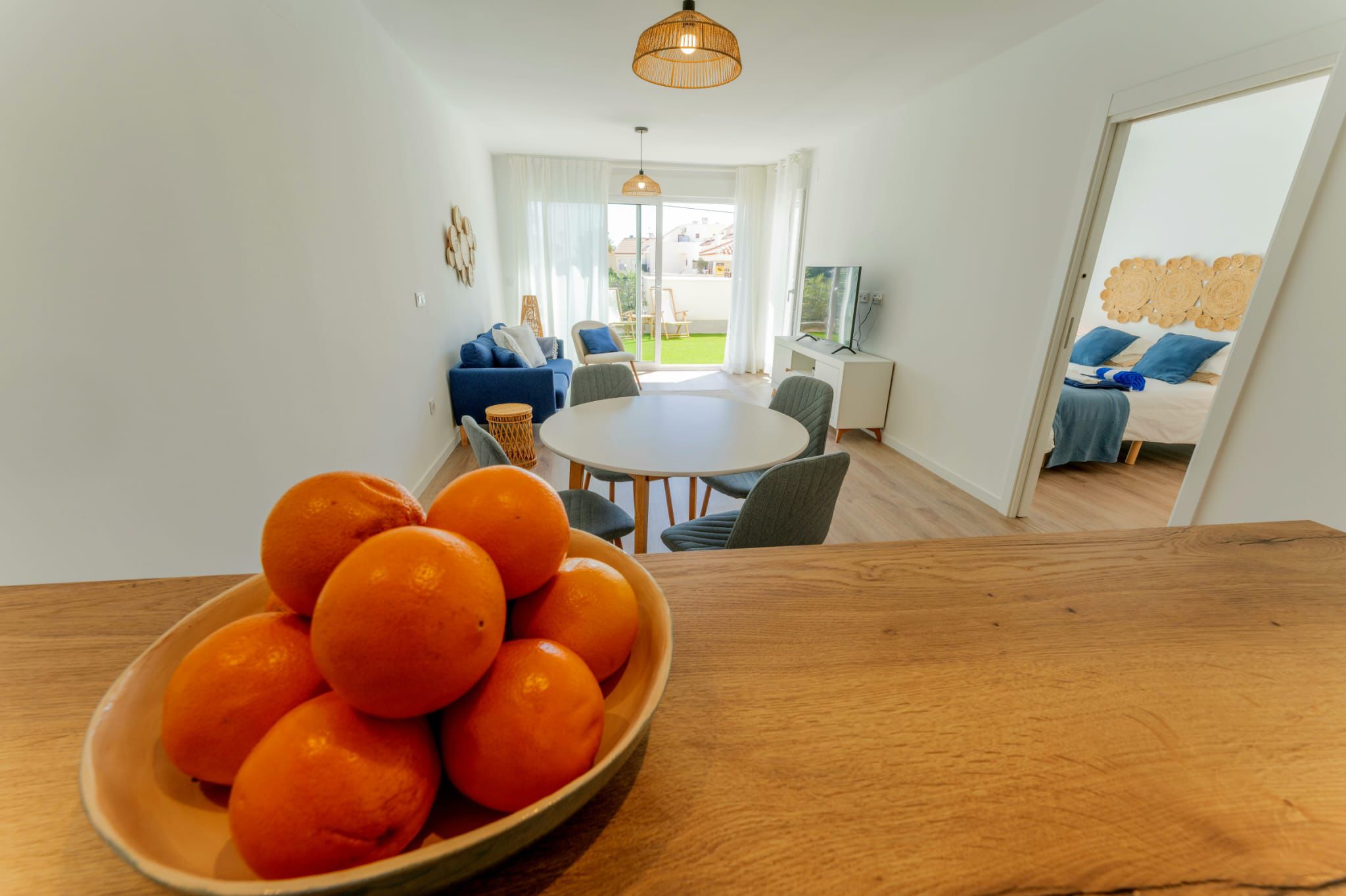 Prachtig appartement op de begane grond, gelegen in een privéresidentie met gemeenschappelijk zwembad en aangelegde tuinen. De woning beschikt over 2 slaapkamers, 2 badkamers en een open keuken met eetkamer, volledig uitgerust met meubels en apparatuur. Met een oppervlakte van 81 m², heeft het een privétuin, ideaal om van het buitenleven te genieten.