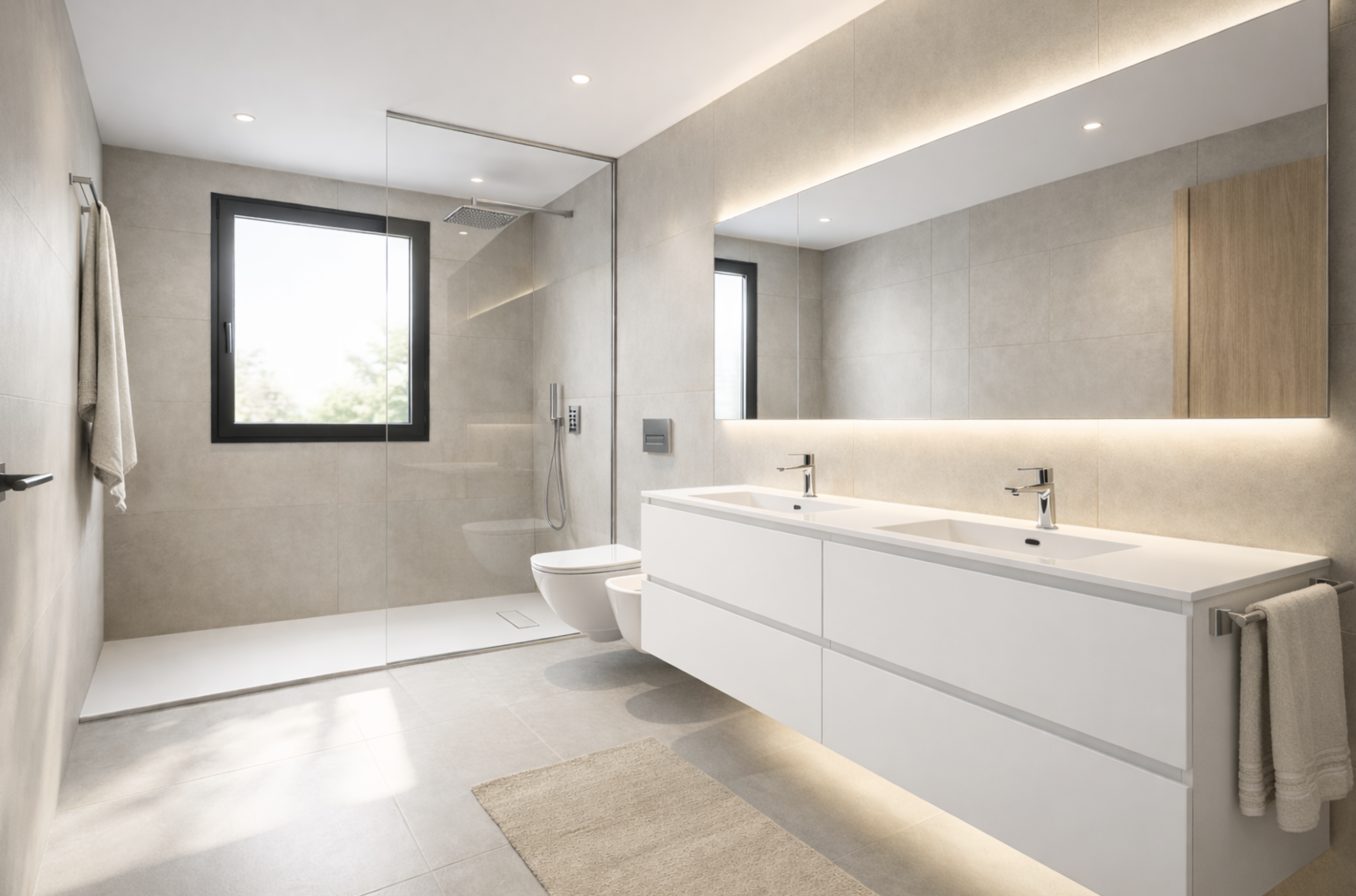 De bovenverdieping beschikt over twee extra tweepersoonsslaapkamers, beide met een en-suite badkamer, ontworpen voor privacy en comfort. Eén van de slaapkamers heeft bovendien een inloopkast. Vanuit beide kamers is er toegang tot een prachtig terras van 44 m², ideaal om te ontspannen, zonnen of van het uitzicht te genieten.