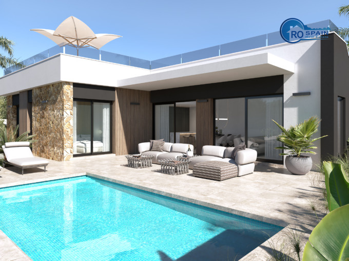 Vrijstaande villa’s met zwembad en privéparkeerplaats verdeeld over twee verdiepingen plus dakterras en hebben drie slaapkamers en twee badkamers.