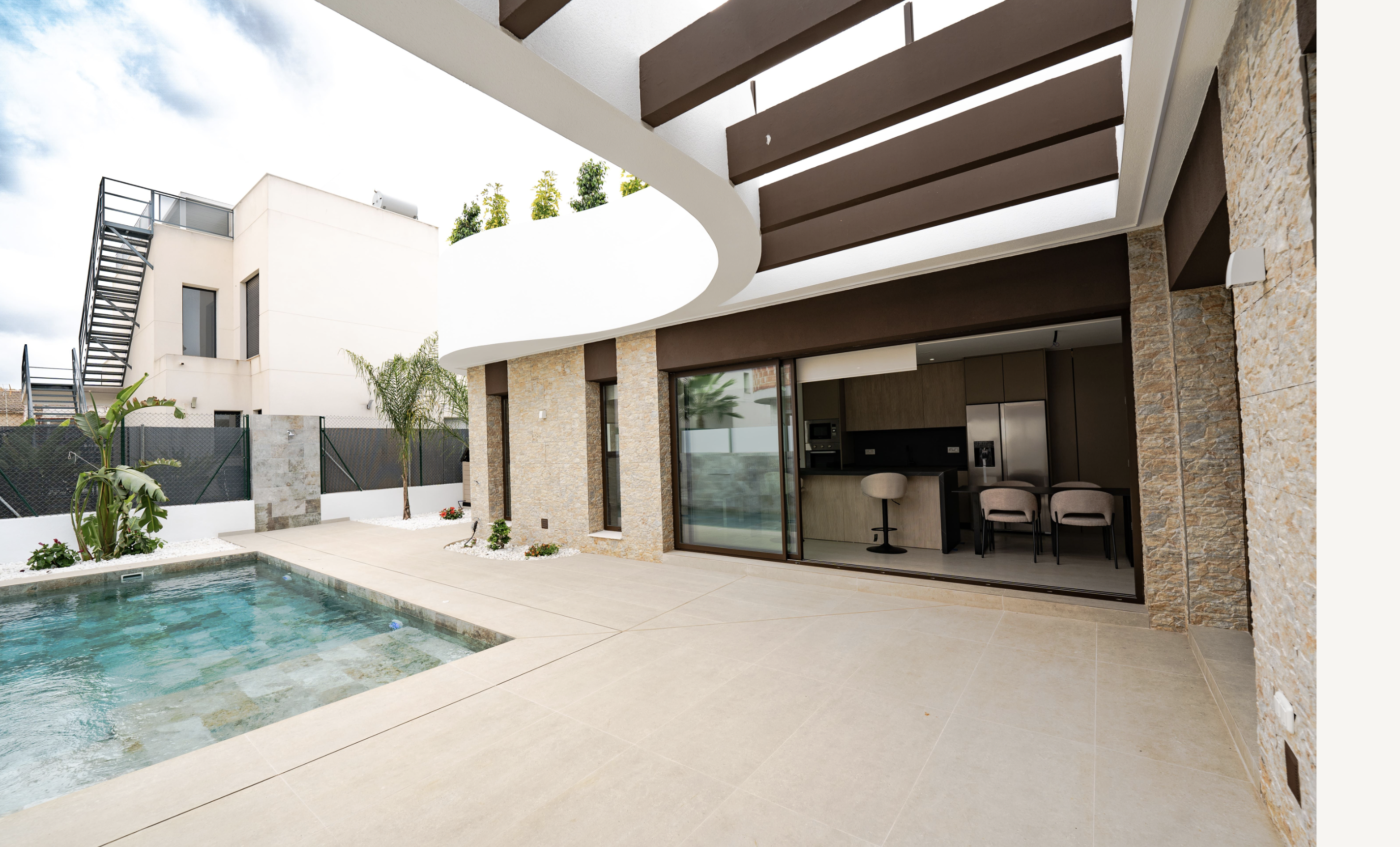 De badkamers worden compleet uitgerust met wastafel, badkamermeubel, spiegel en douchescherm. De villa is voorzien van airconditioning, warmwatersysteem voor huishoudelijk gebruik, video-intercom, elektrische zonwering, Ledverlichting door de gehele woning en een domoticasysteem.