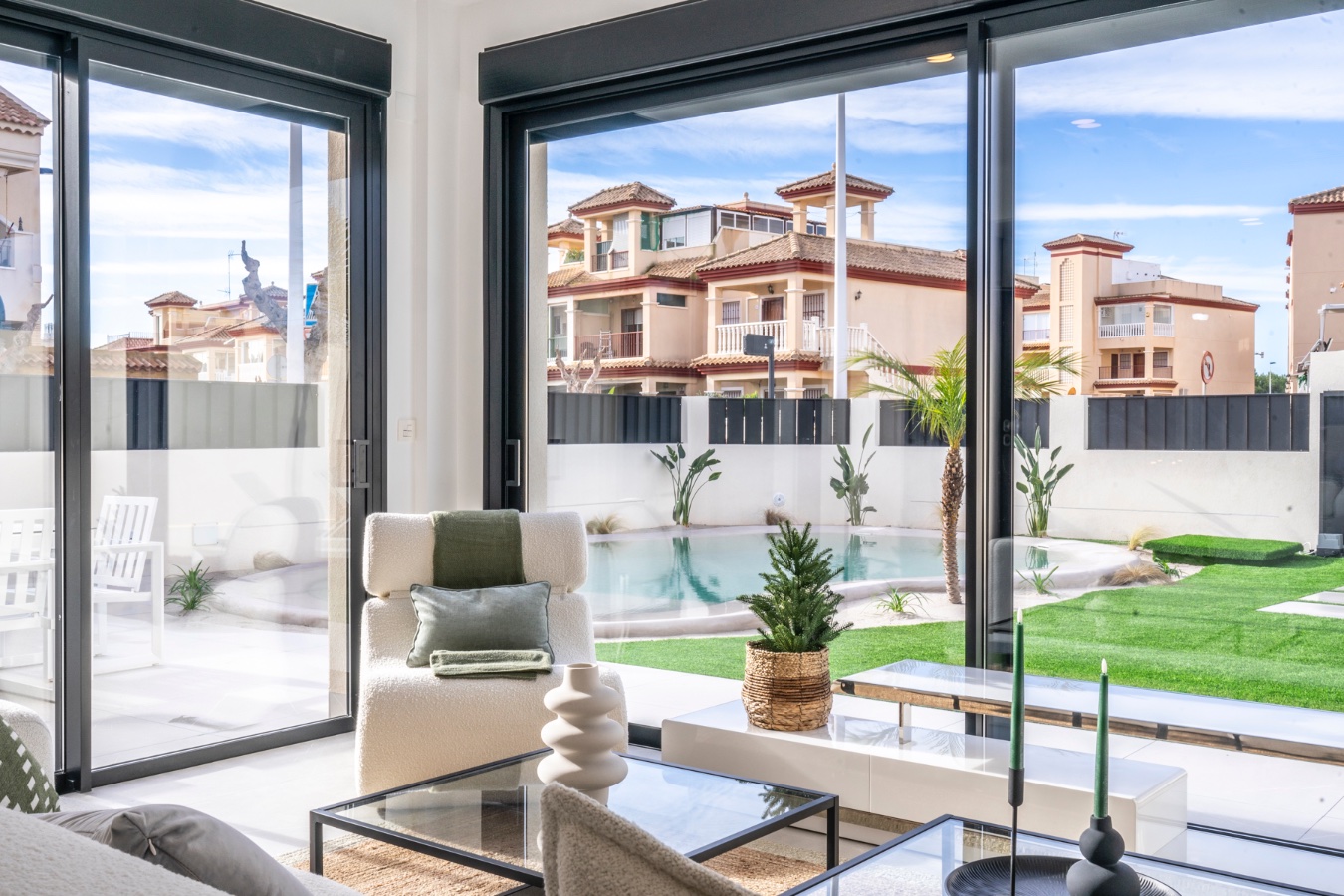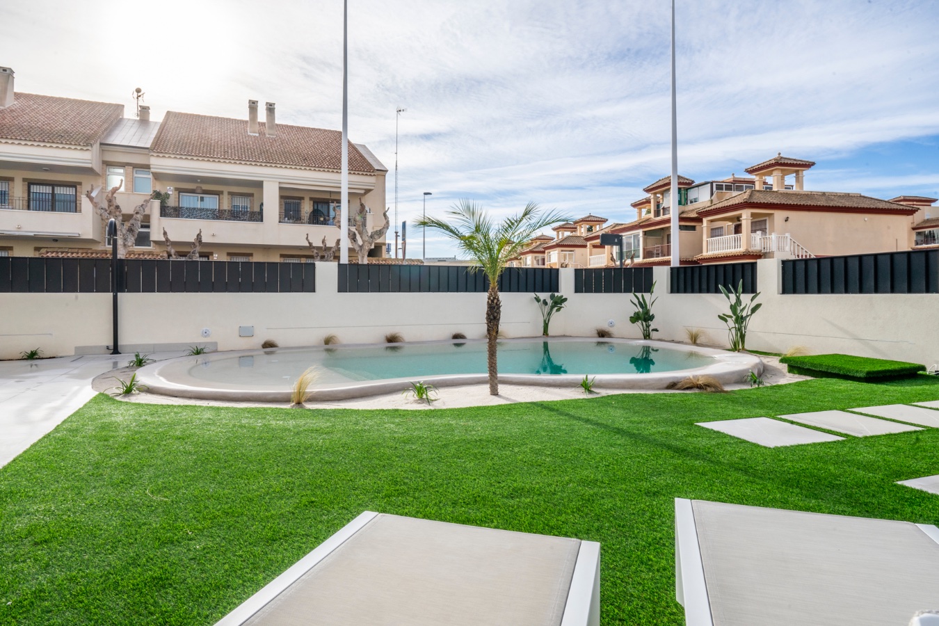 Elke woning beschikt over ruime woonvertrekken die comfort bieden, evenals een privézwembad met strandtoegang, perfect om het mediterrane klimaat het hele jaar door te beleven. De buitenruimtes zijn zorgvuldig aangelegd om privacy en harmonie met de natuurlijke omgeving te waarborgen.